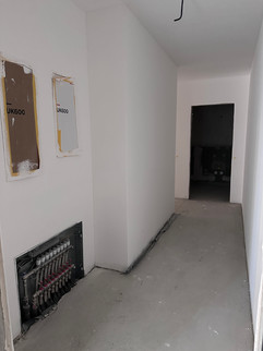 The first apartments are shining in white! The painter's fleece and the first coat of paint have already been completed in some apartments. The work will continue seamlessly and is advancing rapidly.